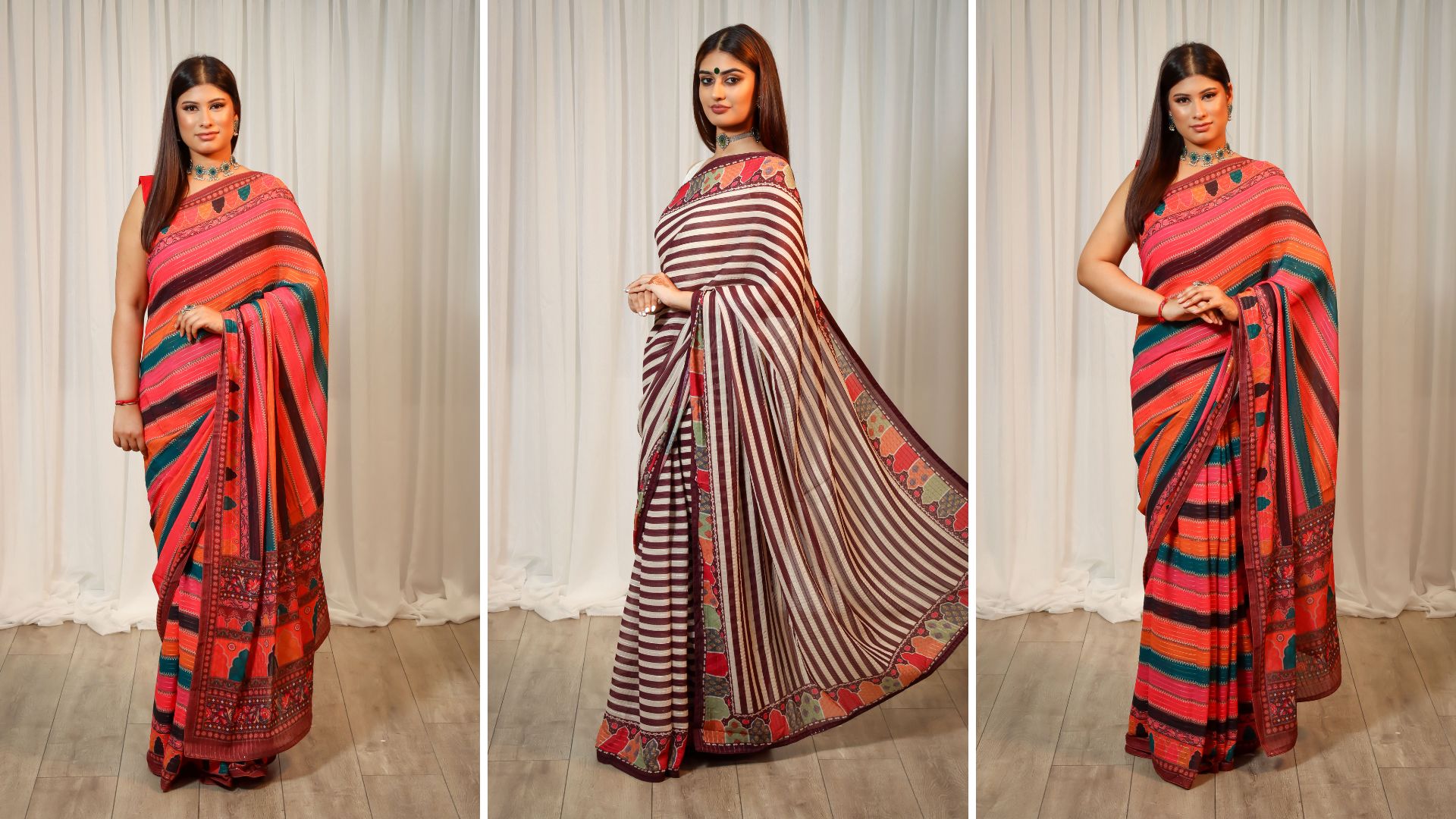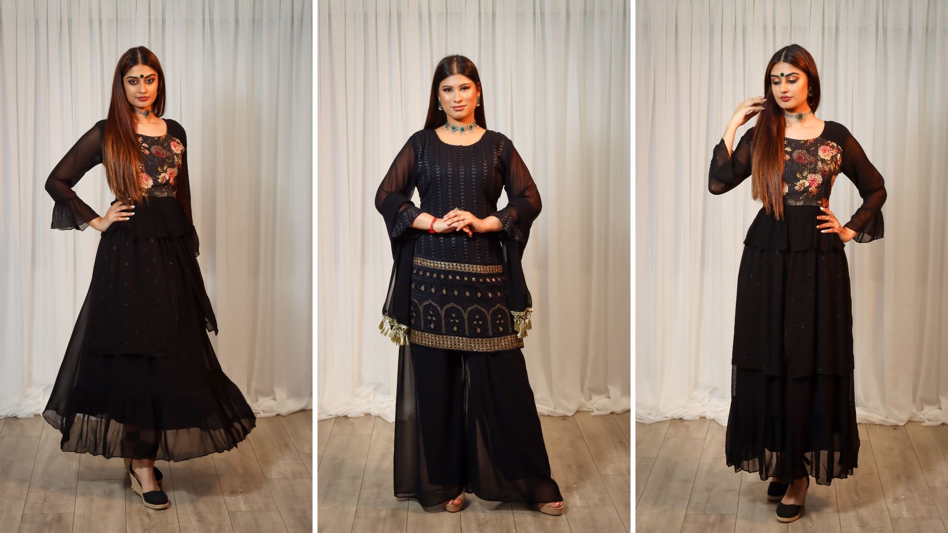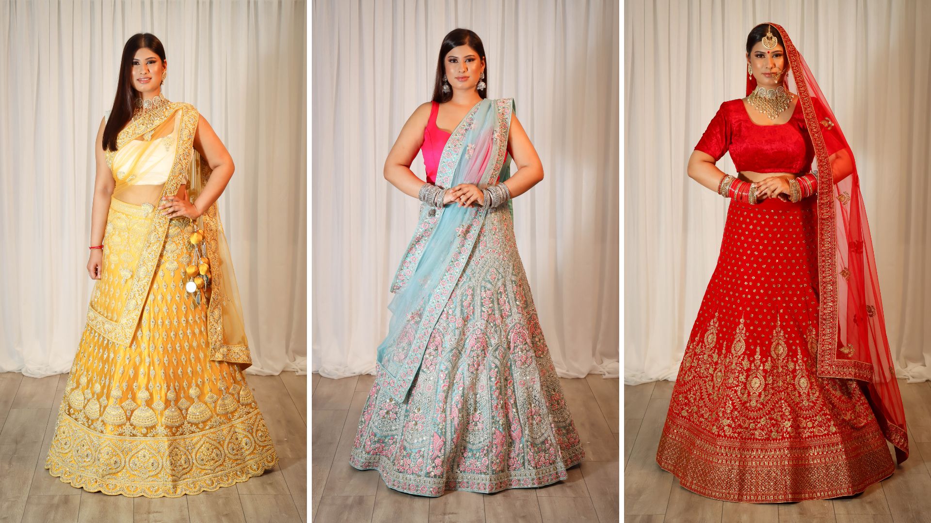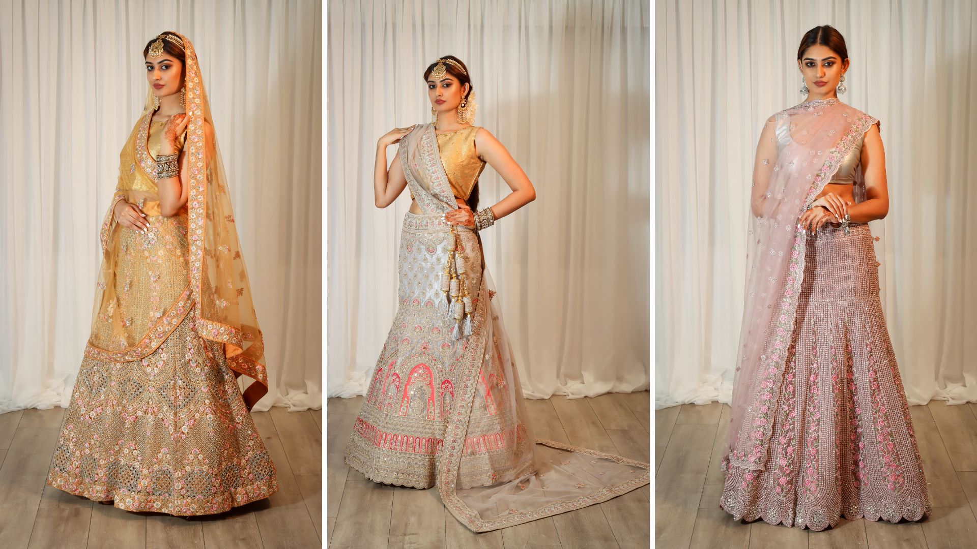 A glimpse into a collection of Bridal, semi-bridal, fashion & couture lehengas, sequin and printed sarees and the latest indo-fusion collection at Bombay Creations.